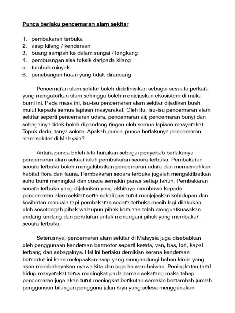 Punca Berlakunya Pencemaran Alam Sekitar Pdf