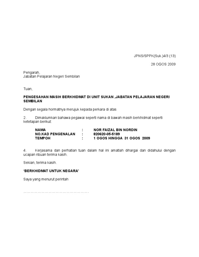 NO KP telah bertugas. Surat permohonan karyawan baru cute766. Surat pengesahan status pemohon dari majikan islam atau.